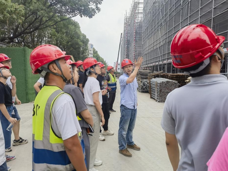 交流伊始,首先由企业项目负责人就在建的1#车间的工程概况以及施工组织设计等内容进行了介绍,其中重点介绍了施工过程中遇到的难点及解决措施。对于施工过程中运用到的新材料、新技术、新工艺,在座的青年教师们表现出了浓厚的学习兴趣,与项目技术人员进行了热烈的讨论,学习到了行业先进技术,了解了行业企业前沿发展动态。交流结束后,杨建林带领与会教师们一起到施工现场进行了实地参观。