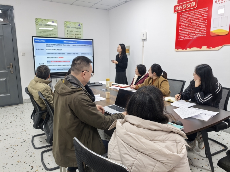 会议中,首先,姜春就2024版《会计信息系统应用》的课程标准展开汇报。王礼红针对该课程标准提出,采购与应付款管理系统业务处理等可适当增加课时,结合理论知识进行讲解。王文娟结合自身教授该门课程的经验提出建议,在授课时可采用分组形式,组织学生小组讨论,培养学生主动思考、解决问题的能力;同时,每个小组进行积分奖励,以充分调动学生的积极性;其次,围绕大数据与会计专业的课程体系建设,应充分发挥大赛软件的价值,现有的课程可结合大赛软件进行理实一体化教学,提高课堂的质量。最后,王礼红分享了团队参加江苏省业财税赛项的备赛经验,王文娟则展示了第五届全国高等院校财务数智化大赛(财务大数据分析赛项)(江苏省赛)获奖作品,讲解了在备赛时选手准备PPT及汇报时的注意事项,为我们会计技能赛的备赛提供了思路。